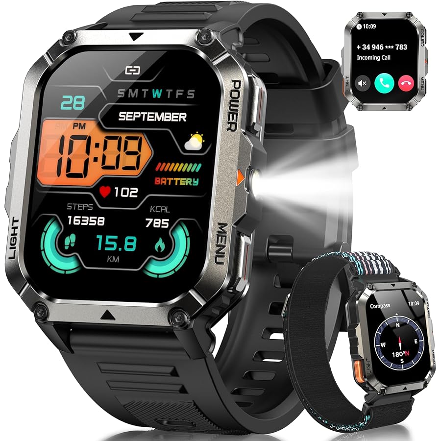 ¿Buscas un reloj inteligente que aguante tu ritmo de vida aventurero sin sacrificar funciones? En esta reseña exhaustiva del Men's Military Smart Watch, analizamos a fondo este smartwatch de aspecto robusto. Te contamos todo sobre su rendimiento en el dÃa a dÃa, sus puntos fuertes y débiles, y además, te ayudamos a encontrar las mejores ofertas para que tomes la mejor decisión de compra.