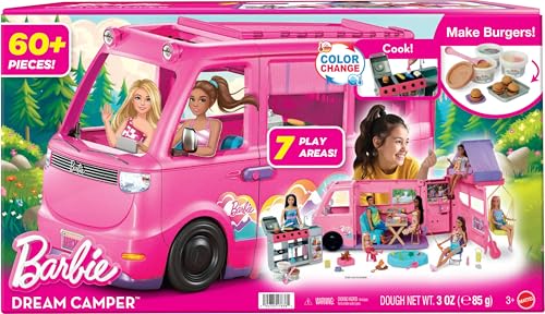 Appena aperta la confezione del Barbie Camper dei Sogni, la prima cosa che colpisce sono le dimensioni: è un giocattolo davvero imponente. Il camper, di un brillante colore rosa Barbie, si presenta solido e con ruote funzionanti, pronto per essere spinto verso la prossima meta immaginaria. Ma è aprendolo che si rivela la vera magia: il veicolo si trasforma in un gigantesco playset a tema campeggio, svelando ben sette aree di gioco distinte. L'assemblaggio richiesto è minimo e intuitivo, permettendo di entrare subito nel vivo del gioco.