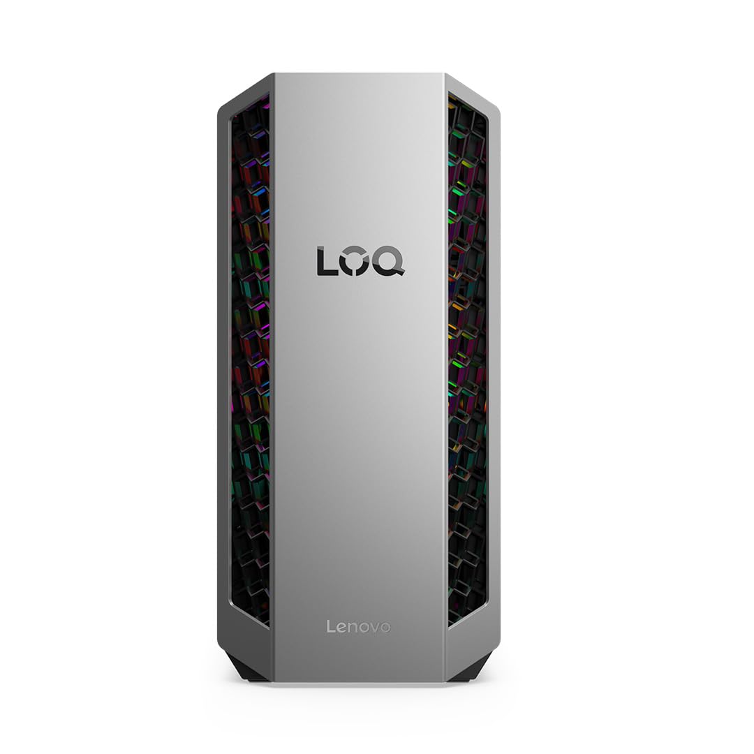 Il Lenovo LOQ Gaming Desktop si presenta con uno chassis da 26 litri, una dimensione che lo rende compatto ma non angusto. Il design bicolore, che unisce le tonalità Luna Grigio ed Eclipse Nero, è moderno e sobrio, capace di adattarsi a qualsiasi postazione senza risultare eccessivamente vistoso. La parte frontale integra in modo intelligente la ventilazione in una texture 3D, garantendo un flusso d'aria efficace senza sacrificare l'estetica.