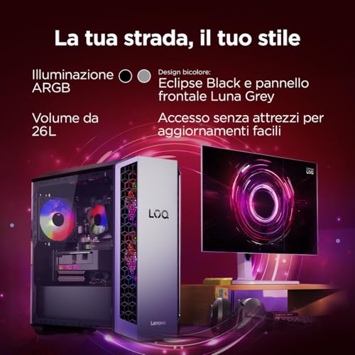 Il Lenovo LOQ Gaming Desktop 26L si posiziona come una scelta eccellente per chi cerca un PC da gaming pre-assemblato potente, moderno e con un buon margine di aggiornabilità. L'accoppiata tra il processore AMD Ryzen 7-8745HX e la nuovissima NVIDIA GeForce RTX 5060 offre prestazioni solide per il gaming a 1080p e 1440p. Il design è elegante e funzionale, con il plus del pannello trasparente e dell'illuminazione ARGB. La facilità con cui si possono aggiornare i componenti è un valore aggiunto non da poco, che proietta questo desktop nel futuro. È una macchina equilibrata che sa soddisfare sia il gamer che l'utente che necessita di potenza per la produttività, il tutto in un formato compatto e ben progettato.