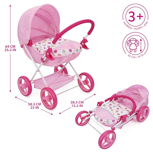 - La Carrozzina (Pram): È senza dubbio l'elemento principale del set. Progettata per bambole fino a 46 cm, ha una struttura leggera e ruote scorrevoli che la rendono facile da spingere anche per i bambini più piccoli. La cappottina è regolabile, permettendo di proteggere la bambola dal sole immaginario. Un dettaglio interessante è la sua multifunzionalità: può essere utilizzata sia come carrozzina classica che come passeggino. La maniglia è ad un'altezza comoda per i bambini dai 3 anni in su. Durante le nostre prove, la carrozzina si è dimostrata stabile su superfici piane come pavimenti e tappeti, ma un po' più incerta su terreni sconnessi come un prato.