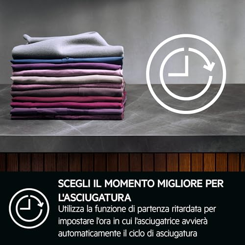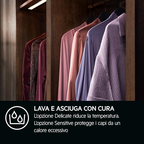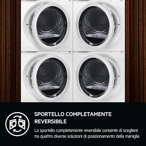 Oltre alla tecnologia, AEG ha curato anche gli aspetti pratici. Il design è moderno e pulito, con un'interfaccia intuitiva che rende semplice la selezione dei numerosi programmi disponibili (tra cui Lenzuola XL, Piumoni, Stiro facile, Capi sportivi e altri). Una delle caratteristiche più apprezzate è lo sportello completamente reversibile, che offre quattro diverse posizioni per la maniglia. Questo rende l'installazione incredibilmente flessibile, sia che vogliate posizionarla a fianco della lavatrice o impilarla a colonna.