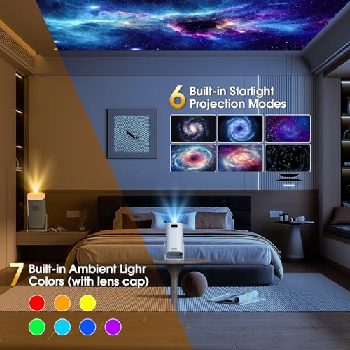 Una caratteristica inaspettata e divertente è la "Modalità Stella". Il proiettore può creare effetti luminosi che simulano una galassia o una nebulosa, trasformando il soffitto della stanza in un cielo stellato. Una funzione curiosa, perfetta per creare atmosfera o per la camera dei bambini.