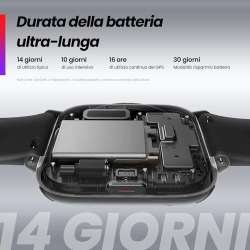 Ma il vero cavallo di battaglia di questo dispositivo è l'autonomia. Con una batteria da 300 mAh, Amazfit dichiara fino a 14 giorni di utilizzo tipico. Dai nostri test, con un uso reale che include notifiche, monitoraggio continuo della salute e qualche sessione di allenamento con GPS, siamo riusciti a coprire tranquillamente 8-10 giorni con una singola carica. Un risultato davvero eccellente che fa dimenticare l'ansia da ricarica quotidiana tipica di molti altri smartwatch.