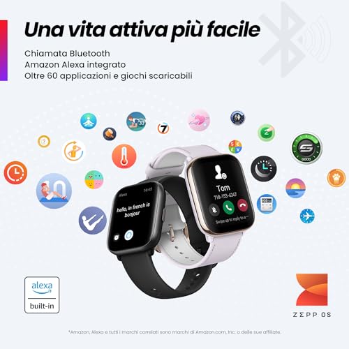 È presente anche l'assistente vocale Alexa, che permette di impostare sveglie, controllare dispositivi della smart home e ottenere informazioni con semplici comandi vocali. Inoltre, lo smartwatch dispone di una memoria interna che consente di archiviare musica e ascoltarla tramite cuffie Bluetooth, una funzione perfetta per chi ama allenarsi senza portare con sé il telefono.
