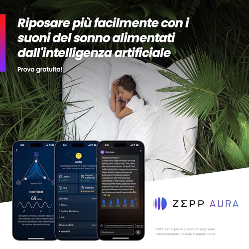 L'intelligenza artificiale entra in gioco con Zepp Coach, un vero e proprio allenatore virtuale che crea piani di allenamento personalizzati in base ai nostri obiettivi e alla nostra condizione fisica. Questa funzione, sebbene alcune delle sue analisi più avanzate richiedano un abbonamento, rappresenta un valore aggiunto notevole per chi vuole allenarsi in modo strutturato.