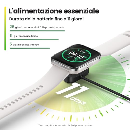 L'autonomia è da sempre un fiore all'occhiello della serie Bip, e questo modello non fa eccezione. La batteria da 300 mAh garantisce prestazioni eccellenti. Con un utilizzo tipico, si possono raggiungere tranquillamente gli 11 giorni di autonomia, che scendono a circa 5 giorni in caso di uso intenso. Se poi si attiva la modalità di risparmio energetico, la durata può estendersi fino a ben 26 giorni. Questo significa poter partire per una vacanza o un weekend senza la preoccupazione di dover portare con sé il cavo di ricarica magnetico, che comunque completa un ciclo in circa 2 ore.