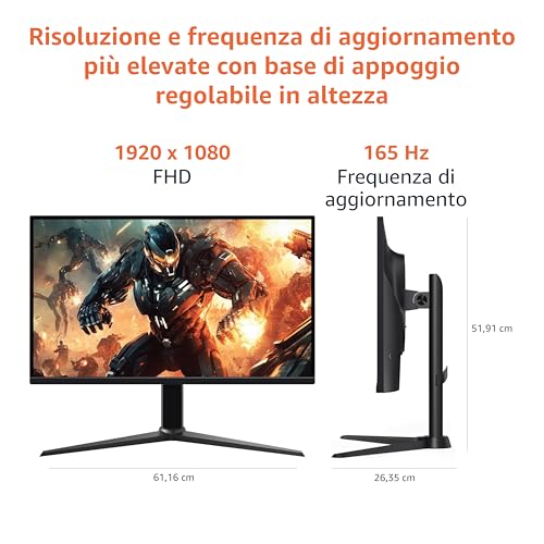 - Alta frequenza di aggiornamento (fino a 165Hz) e basso tempo di risposta (1ms)