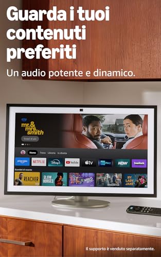 Oltre a essere un organizzatore familiare, l'Echo Show 15 è anche un potente strumento di intrattenimento. Con l'integrazione di Fire TV, hai accesso a tutte le principali piattaforme di streaming come Prime Video, Netflix, YouTube, Disney+ e molte altre. Lo schermo da 15,6 pollici è perfetto per seguire una video ricetta in cucina o per guardare una serie TV mentre si fa altro. L'esperienza è resa ancora più comoda dal telecomando incluso, che permette di navigare nell'interfaccia senza dover toccare lo schermo.