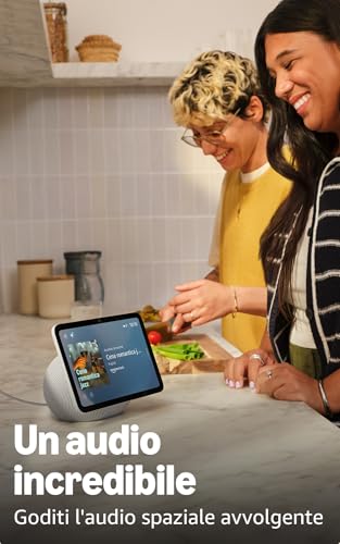 Lo schermo è un pannello touch HD da 8 pollici con una risoluzione di 1280 x 800 pixel. Sebbene le specifiche non siano cambiate rispetto alla generazione precedente, la qualità visiva è eccellente: i colori sono vivaci, la luminosità è buona e il testo risulta sempre nitido e facile da leggere. Questo lo rende perfetto non solo per visualizzare informazioni come meteo e ricette, ma anche per godersi video da piattaforme come Prime Video, Netflix o YouTube.