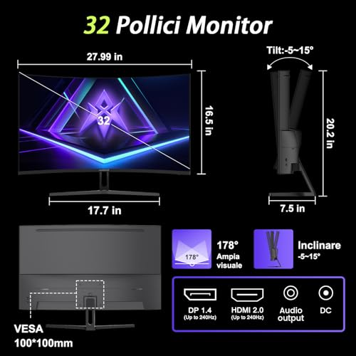 - Curvatura 1500R che aumenta l'immersività nel gioco