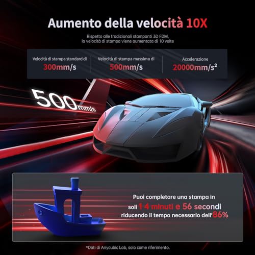 La sorgente luminosa, chiamata Anycubic LighTurbo, utilizza una matrice di LED per proiettare una luce UV potente e uniforme su tutto lo schermo. Questo non solo garantisce una polimerizzazione omogenea della resina, ma permette anche velocità di stampa elevate, arrivando fino a 50 mm/h.