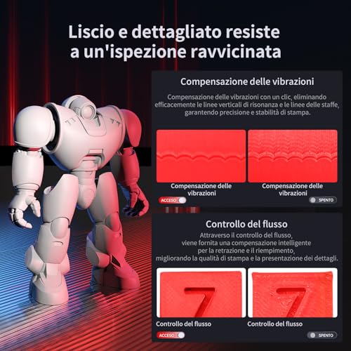 La struttura della stampante è solida e ben costruita, con una base in plastica robusta e parti metalliche dove serve, come lungo l'asse Z, che garantisce stabilità e precisione nei movimenti. La calibrazione del piatto di stampa, operazione fondamentale per il successo delle stampe, è un processo guidato e molto semplice, che richiede solo pochi minuti. Anche un principiante può sentirsi a proprio agio fin da subito.