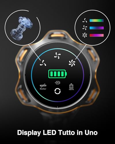 L'interazione con l'aspirapolvere è resa semplice e intuitiva da un ampio display a LED a colori, spesso di tipo touch. Questo schermo non è un semplice vezzo estetico: fornisce informazioni cruciali in tempo reale. Puoi vedere chiaramente la modalità di aspirazione selezionata, la percentuale di batteria residua e ricevere avvisi utili, come quando il contenitore della polvere è pieno o la spazzola è bloccata. Questa funzione permette di pianificare le pulizie senza la classica "ansia da batteria" e di intervenire subito in caso di problemi.
