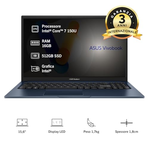 Il vero punto di forza dell'ASUS Vivobook 15 F1504VA risiede nella sua versatilità hardware. È disponibile in numerose configurazioni, con processori che vanno dagli Intel Core i3 fino ai più potenti Intel Core 7 e i7 di 13ª generazione. Questo permette di scegliere il modello più adatto alle proprie necessità, che si tratti di semplice navigazione e pacchetto Office o di attività più impegnative come l'editing leggero di foto e video.