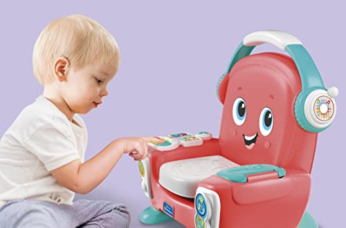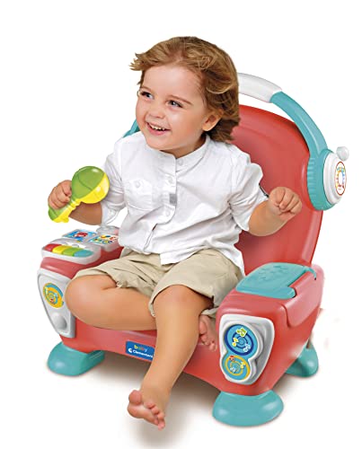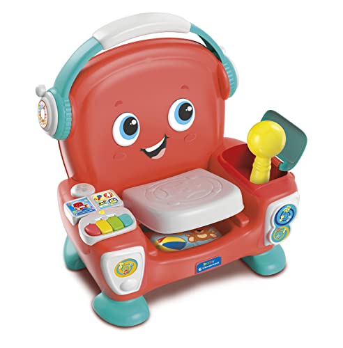 La struttura è solida e ben progettata, pensata per accogliere comodamente i piccoli mentre si dedicano alle numerose attività proposte. Al centro di tutto c'è la musica: la poltroncina è infatti ricca di strumenti musicali come una maraca, una bacchetta per il tamburo, una pianola colorata e una piccola consolle con pulsanti touch e uno schermo luminoso.