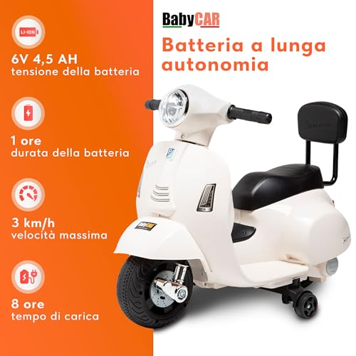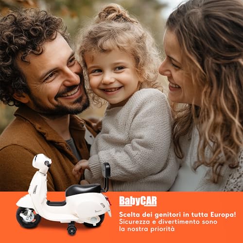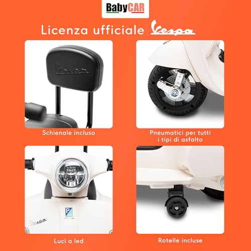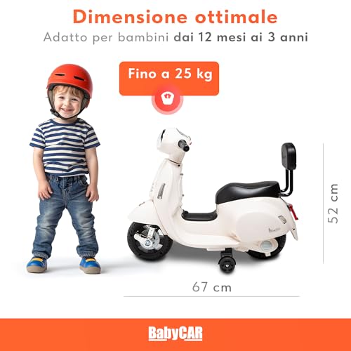 La BabyCar Mini Vespa Elettrica non è un semplice giocattolo cavalcabile, ma una vera e propria riproduzione in miniatura dell'iconica Vespa Piaggio, pensata per i bambini da 1 a 3 anni. L'impatto visivo è subito notevole: le linee classiche, i dettagli curati e la licenza ufficiale Piaggio la rendono un oggetto del desiderio non solo per i più piccoli, ma anche per i genitori amanti del design italiano. Appena tolta dalla scatola, si percepisce una certa solidità costruttiva, fondamentale quando si parla di prodotti destinati alla prima infanzia.