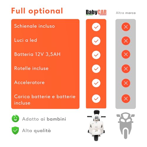 In conclusione, la BabyCar Mini Vespa Elettrica per Bambini 1-3 Anni si è rivelata un prodotto eccellente, che unisce un design iconico e accattivante a caratteristiche tecniche pensate per la sicurezza e il divertimento dei più piccoli. La facilità di montaggio e d'uso, unita a dettagli realistici come luci e suoni, la rendono un regalo perfetto per stimolare l'autonomia e la coordinazione motoria. Sebbene l'autonomia della batteria possa sembrare limitata, è perfettamente adeguata alla soglia di attenzione e all'energia dei bambini in questa fascia d'età. Un piccolo sogno su due ruote che regala sorrisi e avventure in totale sicurezza.