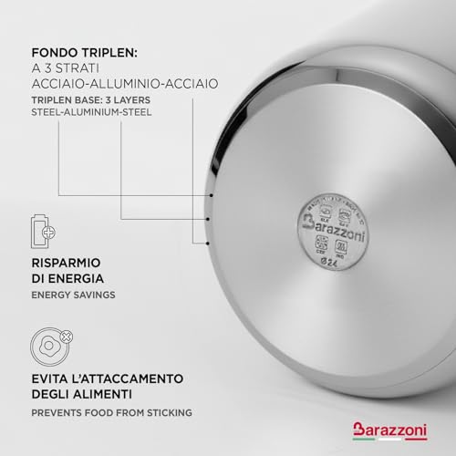 Appena presa in mano, la pentola a pressione Barazzoni Basic trasmette una sensazione di grande robustezza. Il corpo è realizzato interamente in acciaio inossidabile 18/10, un materiale igienico, resistente alla corrosione e perfetto per il contatto con gli alimenti. La finitura è curata, e il fondo Triplen ad alto spessore è progettato per garantire una distribuzione uniforme del calore, evitando che i cibi si attacchino. Questo dettaglio è fondamentale, perché assicura una cottura omogenea e ottimale.