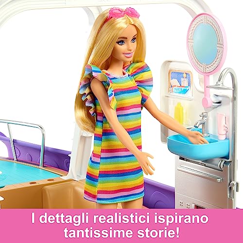 Appena aperta la confezione, ci si trova di fronte a uno yacht di dimensioni considerevoli: parliamo di circa 90 cm di larghezza per 30 cm di altezza. Un bello spazio per far viaggiare la fantasia e ospitare comodamente diverse bambole. All'interno, il set è ricco: più di 20 accessori a tema marino e ben sei diverse aree di gioco, tra cui una piscina con scivolo. È importante sottolineare subito un punto cruciale: le bambole Barbie non sono incluse nella confezione e vanno acquistate separatamente. Troviamo però due simpatici compagni di viaggio: un cagnolino e un delfino, pronti a tuffarsi nelle storie più creative.