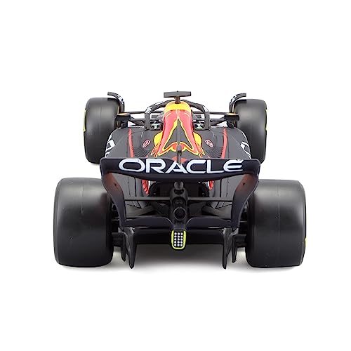 Appena estratto dalla confezione, il modellino della RedBull RB18 di Bburago si presenta davvero bene. La versione in esame include una custodia rigida in plexiglass che non solo protegge il modello dalla polvere, ma lo trasforma subito in un elegante pezzo da esposizione. La base nera, solida e ben rifinita, riporta il nome del modello e del pilota, aggiungendo un tocco di professionalità all'insieme. La prima impressione è decisamente positiva: si percepisce una cura nel packaging pensata per i collezionisti.