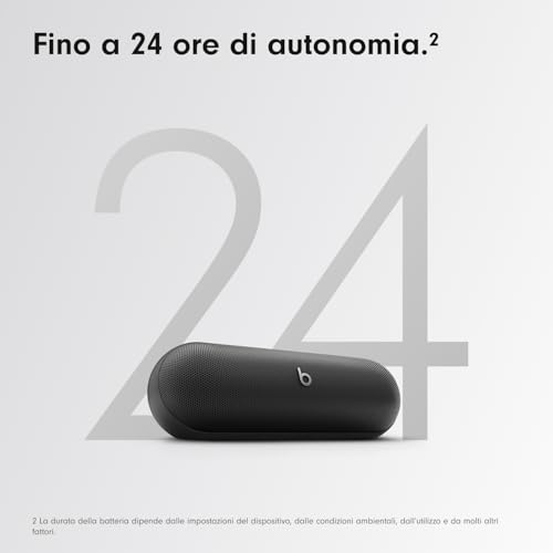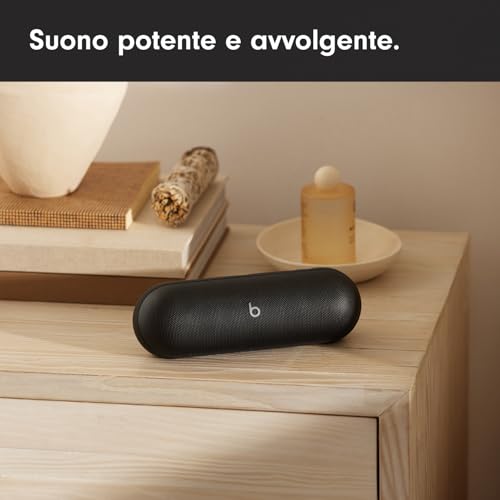 Il nuovo Beats Pill, lanciato nel 2024, segna un gradito ritorno nel mercato affollato degli speaker Bluetooth portatili. A prima vista, mantiene la sua classica e riconoscibile forma a capsula, ma i miglioramenti sono evidenti fin dal primo tocco. Disponibile in tre colorazioni eleganti – Nero Opaco, Rosso Deciso e Oro Champagne – il nuovo Pill unisce estetica e funzionalità in modo impeccabile. Il corpo è ora più leggero del suo predecessore (circa 680 grammi) e vanta una certificazione IP67, che lo rende completamente resistente a polvere e acqua. Questo significa che puoi portarlo in spiaggia o a bordo piscina senza preoccupazioni, potendo resistere a immersioni fino a un metro per 30 minuti.