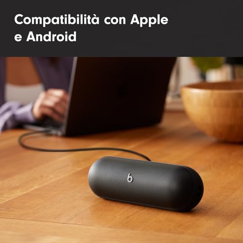 Il Beats Pill del 2024 non è solo bello da vedere e da ascoltare, ma è anche ricco di funzionalità pensate per la vita di tutti i giorni. La connettività Bluetooth 5.3 garantisce un abbinamento rapido e stabile sia con dispositivi Apple (iOS) che Android. Per entrambi i sistemi operativi è disponibile la funzione di one-touch pairing e l'integrazione con i servizi "Dov'è" di Apple e "Trova il mio dispositivo" di Google, un vero plus in caso di smarrimento.