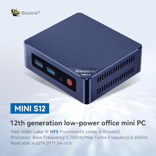 Il Beelink Mini S12 Pro si presenta come una soluzione ideale per chi cerca un computer desktop compatto, silenzioso e dai consumi energetici ridotti. Appena tolto dalla scatola, si rimane colpiti dalle sue dimensioni incredibilmente contenute: con i suoi 11,5 x 10,2 x 3,9 cm, trova spazio praticamente ovunque, potendo persino essere montato dietro a un monitor grazie alla staffa VESA inclusa nella confezione. Il design è semplice e funzionale, con uno chassis in plastica di buona qualità di colore blu scuro che, pur non essendo un materiale premium, risulta solido e ben assemblato.