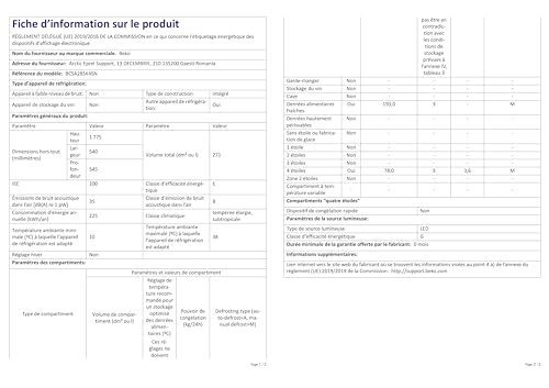 Esteticamente è un prodotto semplice, senza fronzoli, destinato a scomparire dietro l'anta del mobile della cucina. All'interno, l'organizzazione degli spazi è razionale: il vano frigo è dotato di ripiani in vetro infrangibile, che secondo Beko possono reggere fino a 25 kg di peso, e di un cassetto per frutta e verdura. L'illuminazione a LED garantisce un'ottima visibilità interna con un consumo energetico ridotto.