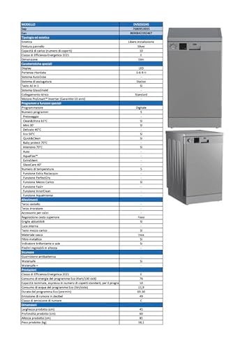 Per quanto riguarda la rumorosità, con i suoi 49 dBA si attesta in una fascia media (Classe di emissione rumore C). Non è la più silenziosa sul mercato, ma il suo funzionamento non risulta eccessivamente fastidioso, specialmente se utilizzata durante il giorno. Il sistema di asciugatura è di tipo statico, il che significa che al termine di alcuni cicli le stoviglie, soprattutto quelle in plastica, potrebbero non risultare completamente asciutte.