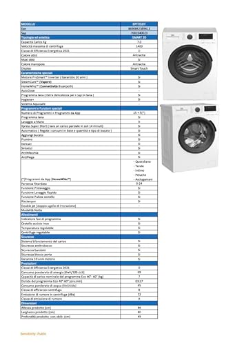 La Beko EPT7D2IT si presenta come una lavatrice a carica frontale da 7 Kg, una capacità ideale per single, coppie o piccole famiglie fino a 3 persone. Con una centrifuga che arriva a 1400 giri al minuto, promette di lasciare il bucato ben strizzato, riducendo notevolmente i tempi di asciugatura. Esteticamente, il design è semplice ma moderno, con un oblò antracite che le conferisce un tocco di eleganza e un display Smart Touch intuitivo. Le sue dimensioni, con una profondità di soli 49 cm, la rendono una soluzione "slim", perfetta per chi ha problemi di spazio.
