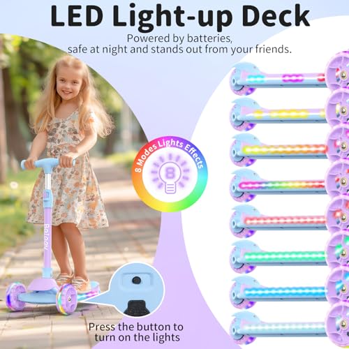 Ma non è finita qui. Anche la pedana è dotata di strisce LED laterali che possono essere accese tramite un piccolo interruttore posto sotto la base. Queste luci, alimentate da 3 batterie AAA (non incluse), offrono diverse modalità e colori, trasformando il monopattino in una vera e propria attrazione. Oltre all'innegabile fattore "wow" che fa impazzire i più piccoli, le luci aumentano notevolmente la visibilità del monopattino durante le ore crepuscolari, aggiungendo un importante elemento di sicurezza.