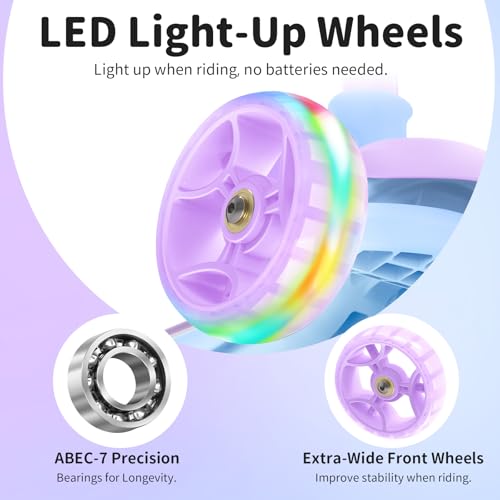 Il vero punto di forza che cattura immediatamente l'attenzione dei bambini è senza dubbio lo spettacolo di luci. Il BELEEV A9 non si limita a qualche lucina sporadica. Le due ruote anteriori si illuminano automaticamente con il movimento grazie all'energia cinetica, quindi senza bisogno di batterie. Più il bambino va veloce, più le ruote brillano, creando un effetto davvero scenografico.