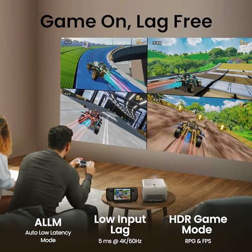 Il proiettore supporta la funzione ALLM (Auto Low Latency Mode) tramite HDMI 2.1, che imposta automaticamente la modalità a bassa latenza quando rileva una console collegata. Inoltre, sono presenti delle modalità HDR specifiche per i giochi (HDR-RPG e HDR-FPS) che ottimizzano l'immagine per esaltare i dettagli in base al genere videoludico. Giocare su uno schermo che può arrivare fino a 150 pollici con questa reattività è un'esperienza davvero coinvolgente.