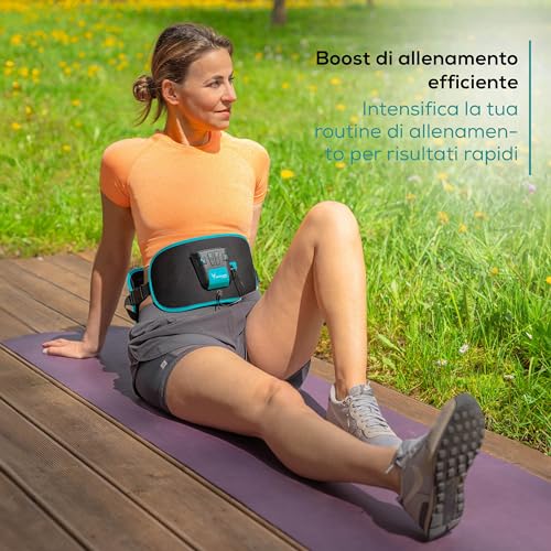Durante l'uso, la sensazione è quella di una contrazione muscolare decisa ma non fastidiosa, a patto di scegliere il giusto livello di intensità. È importante iniziare gradualmente per abituare i muscoli. La cintura è abbastanza discreta da poter essere indossata sotto i vestiti, permettendoti di allenarti davvero ovunque. L'alimentazione a batterie (3 pile AAA) garantisce la massima portabilità.