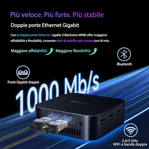Il Blackview RHJEU-MAIN Mini PC (MP80) è un prodotto estremamente interessante che centra in pieno il suo obiettivo. È una soluzione compatta, efficiente e sorprendentemente performante per tutte le attività quotidiane, dall'ufficio allo studio, passando per l'intrattenimento multimediale in 4K. La ricca dotazione di porte, inclusi i tre output HDMI e le due porte LAN, lo rende incredibilmente versatile. Certo, non è una macchina da gaming né una workstation per professionisti della grafica, ma non pretende di esserlo. Se cercate un sostituto silenzioso, a basso consumo e salvaspazio per un vecchio desktop ingombrante, o un media center potente da nascondere dietro la TV, l'MP80 è una scelta eccellente e caldamente consigliata.