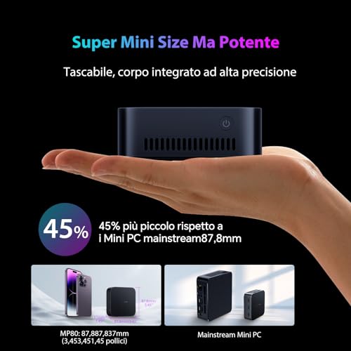 Naturalmente, un dispositivo così compatto e con un processore a basso consumo ha i suoi limiti. La grafica integrata Intel UHD, sebbene migliorata rispetto alle generazioni precedenti, non è pensata per il gaming moderno. Giochi leggeri o titoli più datati potrebbero girare a risoluzioni e dettagli bassi, ma non aspettatevi di poter giocare agli ultimi tripla A. Anche per compiti specializzati come il video editing pesante o il rendering 3D, questo mini PC non è la scelta adatta.