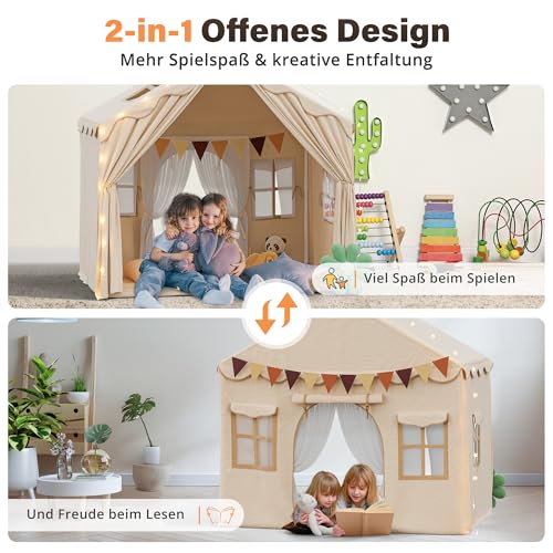 Le lucine a LED sono, senza dubbio, il tocco magico. Creano un'atmosfera calda e accogliente, trasformando la tenda in un castello fatato o in una navicella spaziale pronta a partire per la luna. Funzionano a batteria, quindi non c'è il pericolo di fili elettrici in giro. L'effetto, soprattutto la sera, è davvero suggestivo e stimola incredibilmente la fantasia dei bambini.