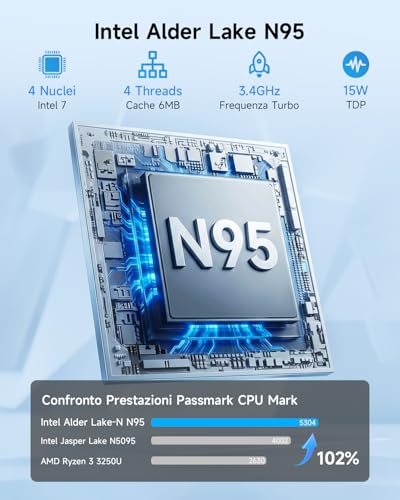 Il vero protagonista di questo mini PC è il processore Intel N150 di 13a generazione. Si tratta di una CPU a basso consumo energetico (appena 6W), con 4 core e 4 thread, capace di raggiungere una frequenza turbo di 3.6 GHz. BMAX dichiara che questo processore offre prestazioni fino al 30% superiori rispetto ai popolari N100 e N95. Nell'uso pratico, cosa significa tutto questo? Significa che il B4 Ultra è perfettamente a suo agio con le operazioni quotidiane.