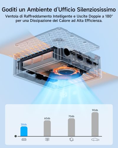 Il sistema di raffreddamento è affidato a una piccola ventola interna. Sebbene sia descritta come silenziosa, alcune recensioni riportano che la ventola è sempre attiva, anche a basso carico. Questo potrebbe essere un fastidio per chi cerca un sistema completamente silenzioso, anche se nell'uso comune in un ambiente domestico o d'ufficio, il rumore non dovrebbe essere un problema insormontabile.