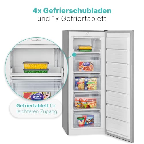Con un volume netto di 168 litri, il Bomann® GS 7364 offre uno spazio di conservazione generoso, ideale per famiglie di medie dimensioni o per chi ama fare scorte. L'organizzazione interna è uno dei suoi punti di forza. È dotato di quattro ampi cassetti trasparenti che permettono di vedere il contenuto a colpo d'occhio, evitando di dover tenere la porta aperta a lungo e disperdere il freddo. Questa soluzione non solo è comoda, ma contribuisce anche a un minor consumo energetico.