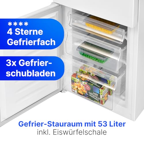 Il vano congelatore, situato nella parte inferiore, è classificato con 4 stelle, il che significa che è in grado di congelare alimenti freschi e conservarli per lunghi periodi. È suddiviso in tre pratici cassetti che facilitano l'organizzazione dei surgelati. La capacità di congelamento è di circa 2,4 kg in 24 ore. È importante notare che lo sbrinamento del congelatore è manuale, mentre quello del frigorifero è semiautomatico.