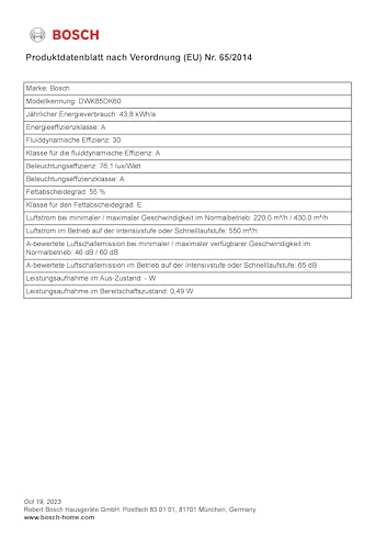 In conclusione, la Bosch DWK85DK60 Serie 2 si rivela un'ottima scelta per chi cerca una cappa aspirante che sia un perfetto equilibrio tra estetica, prestazioni e comfort acustico. Il suo design moderno e inclinato in vetro nero la rende un elemento di arredo, mentre la potenza di aspirazione, specialmente con la funzione intensiva, garantisce un'aria sempre pulita in cucina. La silenziosità è un vero punto di forza, così come l'illuminazione a LED e la facilità di manutenzione. Sebbene la classe di efficienza del filtro antigrasso non sia la migliore sul mercato, le performance generali e la qualità costruttiva tipica di Bosch la rendono un prodotto decisamente consigliato.