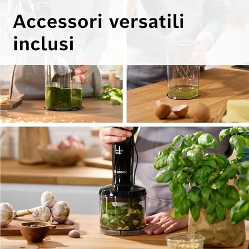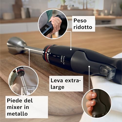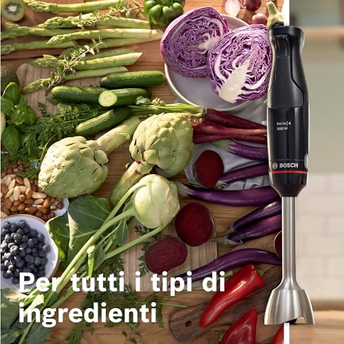Se le tue esigenze in cucina sono più basilari e cerchi un prodotto più semplice ed economico, potresti considerare il Bosch MSMP1000. Questo modello, con i suoi 350 Watt di potenza, è pensato per chi necessita di un frullatore a immersione per compiti leggeri come preparare zuppe o frullati. È dotato di una lama in acciaio inox, impugnatura ergonomica e un sistema di blocco di sicurezza. Pur non avendo la potenza e la versatilità dell'ErgoMaster, rappresenta una soluzione funzionale e affidabile per l'uso quotidiano non intensivo.