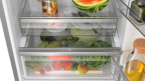 Il vero cuore pulsante di questo frigorifero è la tecnologia dedicata alla conservazione degli alimenti. Il sistema VitaFresh XXL <0°C> è senza dubbio il suo punto di forza. Si tratta di due cassetti extra-large climatizzati che creano l'ambiente di conservazione ideale per diversi tipi di cibo. Un cassetto, con temperatura vicina a 0°C, è perfetto per carne e pesce, mantenendoli freschi molto più a lungo. L'altro cassetto è pensato per frutta e verdura, con la possibilità di regolare l'umidità per preservarne la croccantezza e le vitamine.