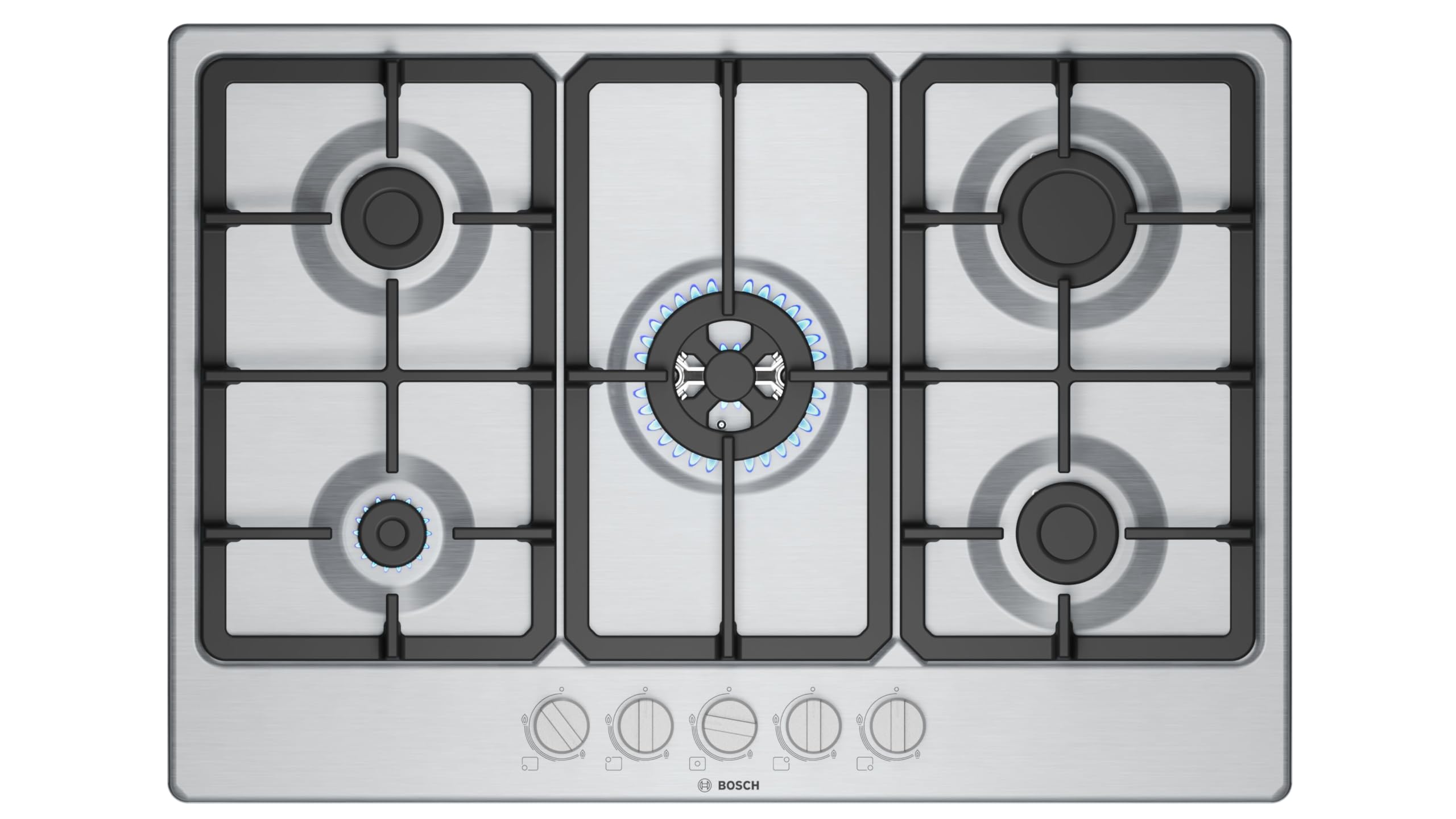 Appena tolto dall'imballaggio, il Bosch PGP6B5K85 si presenta con un design sobrio ma elegante, dominato dalla finitura in acciaio inox che lo rende adatto a quasi ogni stile di cucina, da quelle più moderne a quelle più classiche. Con una larghezza standard di circa 60 cm (58,2 cm per la precisione), si inserisce facilmente nella maggior parte dei vani da incasso. La prima cosa che salta all'occhio sono le manopole a ponticello, un dettaglio di design che non è solo estetico ma, come vedremo, decisamente funzionale.