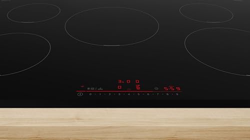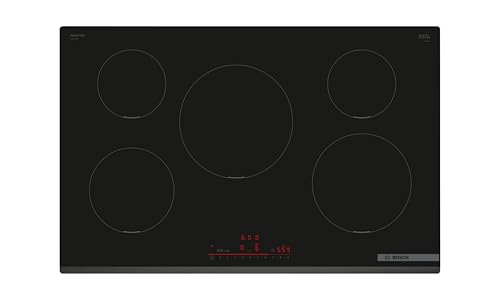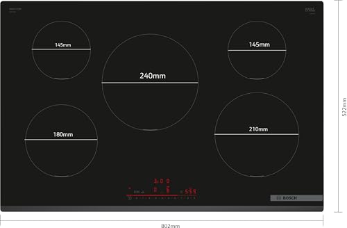 Il piano cottura a induzione Bosch PIV831HB1E si presenta con un design elegante e moderno, caratterizzato da una superficie in vetroceramica nera e un raffinato bordo anteriore smussato (Front-Bevel). Con i suoi 80 cm di larghezza, offre uno spazio di cottura generoso, ideale per chi ama cucinare con più pentole contemporaneamente o utilizzare tegami di grandi dimensioni. Le cinque zone di cottura circolari sono ben distribuite, garantendo flessibilità e comodità durante la preparazione dei pasti.