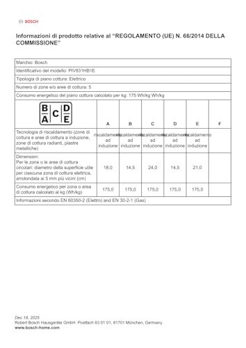 La sicurezza è un aspetto fondamentale, soprattutto in un ambiente come la cucina. Il Bosch PIV831HB1E è dotato di diverse funzioni per garantire la massima tranquillità. L'indicatore di calore residuo a 2 stadi segnala quali zone sono ancora calde, prevenendo scottature accidentali. La sicurezza per bambini (ChildLock) blocca il pannello comandi per evitare accensioni o modifiche involontarie.