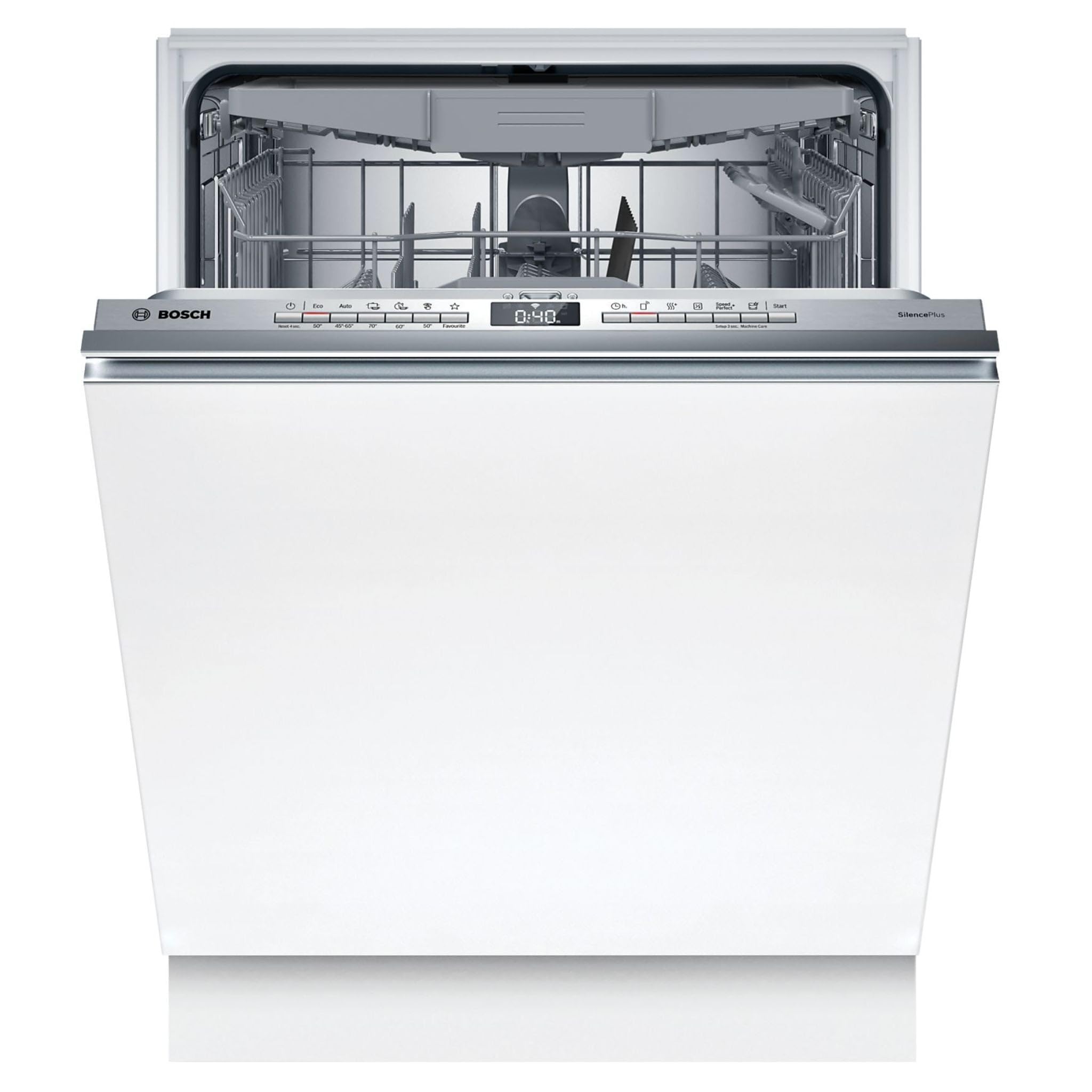 La Bosch SMV4ECX28E offre una gamma di programmi di lavaggio completa, pensata per affrontare ogni tipo di sporco. Tra i programmi principali troviamo: Eco 50 °C, Auto 45-65 °C, Intensivo 70 °C, Express 60 °C e Silence 50 °C. A questi si aggiunge la comodità di poter scaricare programmi aggiuntivi tramite l'app Home Connect.