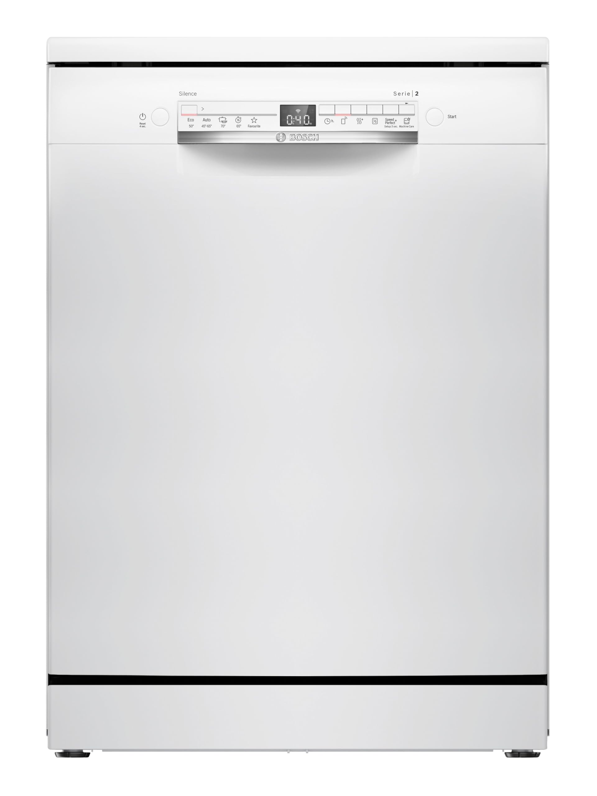 La Bosch SMS2HTW06E offre 5 programmi principali: Eco 50 °C, Auto 45-65 °C, Intensivo 70 °C, Express 65 °C e Preferito. Il programma Eco, come suggerisce il nome, è il più efficiente in termini di consumi di acqua ed energia (9 litri per ciclo e 74 kWh per 100 cicli), ma anche il più lungo, con una durata di quasi 5 ore. Il programma Auto è invece il più versatile: grazie all'AquaSensor, rileva il livello di sporco delle stoviglie e adatta automaticamente i parametri di lavaggio.